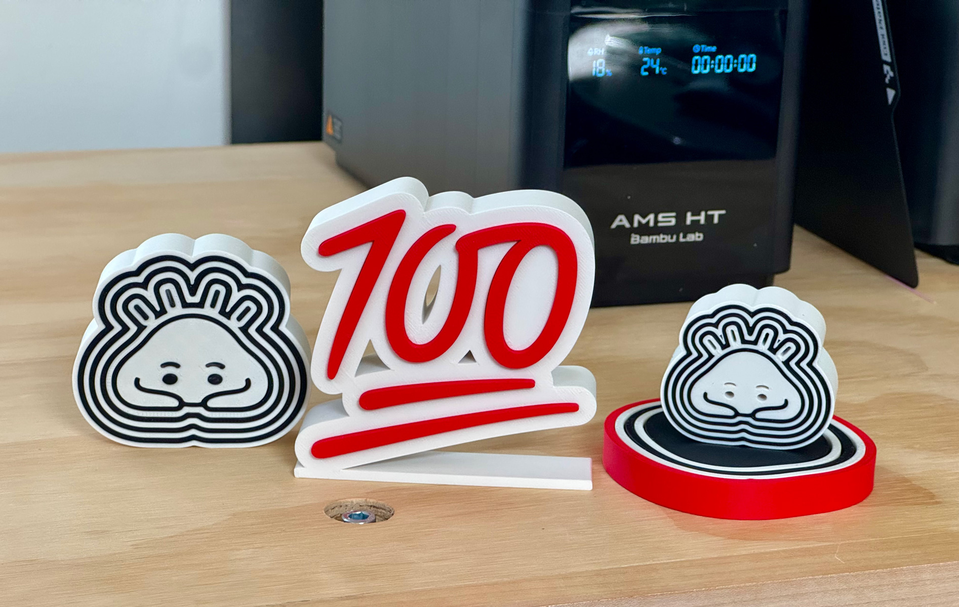 Try making your own design ↗ (that link goes to the 💯 emoji print in the photo above).